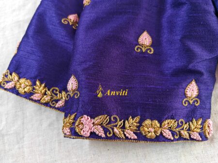 Purple Raw silk Blouse with intricate hand embroidery work.