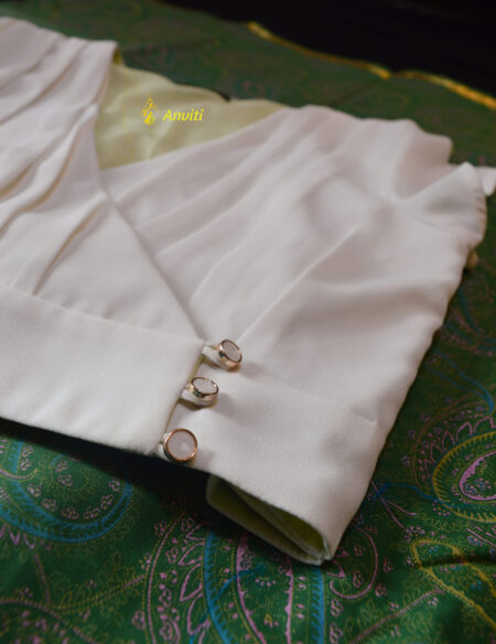 The Blouse is made on order and will be customized for body measurements and choice of color. Order can be placed through WhatsApp or through Phone Call (https://www.anviti.com/contact/)
