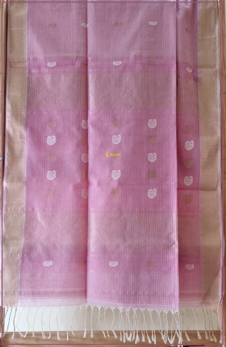 ₹2950Baby pink Ilkal handblock printed cotton + art-silk saree with Ajrakh cotton blouse piece.Saree has beautiful red and zari gold ilkal woven border with tope teni seragu in white and red. Geometrical patterns Handblock printed in mustard, black and red hues.Perfectly matched with Mustard Ajrakh cotton blouse piece.