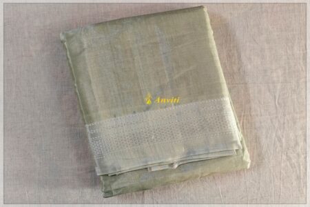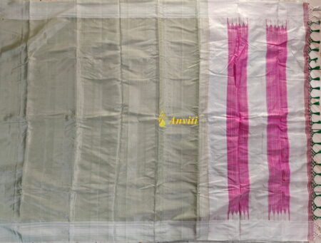 Silver Grey hand-woven Ilkal Viscose Silk Saree with pure silk tope teni pallu.