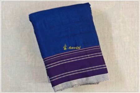 Blue hand-woven Ilkal pure Cotton Saree with dark blue traditional Chikki Paras Silk Border.