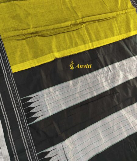 Olive Green Handwoven Ilkal viscose silk saree with pure silk tope teni pallu.