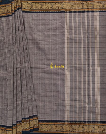 Grey Checks Laksha Chukki Kanchi Cotton Saree with running blouse piece.