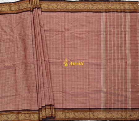 Peach Checks Laksha Chukki Kanchi Cotton Saree with running blouse piece.