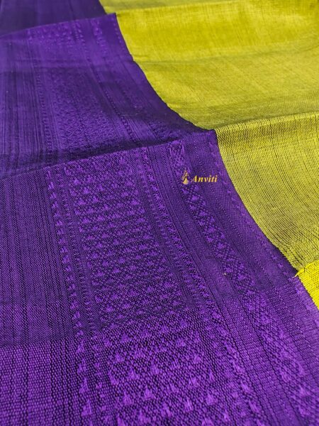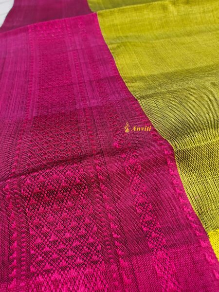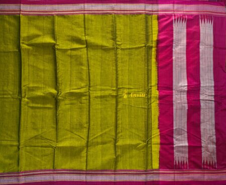 Olive Green hand-woven Ilkal Viscose Silk Saree with pure silk tope teni pallu.