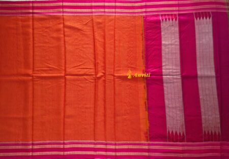 Orange micro checks hand-woven Ilkal Viscose Silk Saree with pure silk tope teni pallu.
