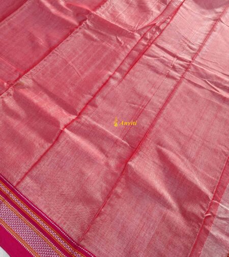 Peach hand-woven Ilkal Viscose Silk Saree with pure silk tope teni pallu.