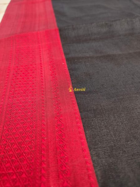 Black Handwoven Ilkal viscose silk saree with pure silk tope teni pallu.