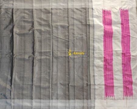 Silver Grey hand-woven Ilkal Viscose Silk Saree with pure silk tope teni pallu.