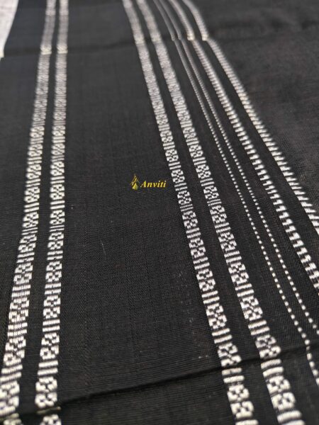 Black hand-woven Ilkal Viscose Silk Saree with pure silk tope teni pallu.