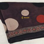 Pure mul-mul cotton, natural dyed and handblock printed Brown Ajrakh Saree with running blouse piece.