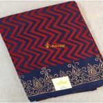 Dark Blue handblock printed mulmul cotton saree with white handblock printed cotton blouse piece.