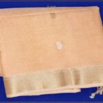 Handwoven pastel peach Maheshwari Silk cotton saree with resham and zari thread woven border and mango buti all over. Saree has running plain blouse piece.