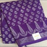 Saree: Purple handblock printed linen by cotton saree with silver zari border – 5.5Mtr