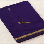 Here is a beautiful Purple color Maheshwari Silk Cotton saree with thin gold zari border and a contrast Magenta pallu and Magenta blouse piece.