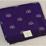 Purplish Blue color super lustrous and soft, hand-woven Mangalagiri Silk by Cotton Saree with beautiful white floral handblock prints throughout the border and pallu. Orange leafy block prints are on end of the pallu and on the running blouse piece.