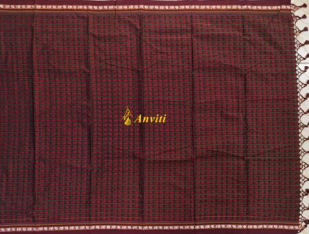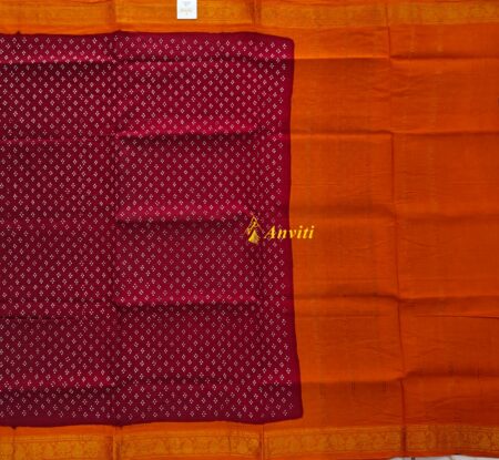 Maroon Wax Sungudi Cotton Saree (without blouse piece).