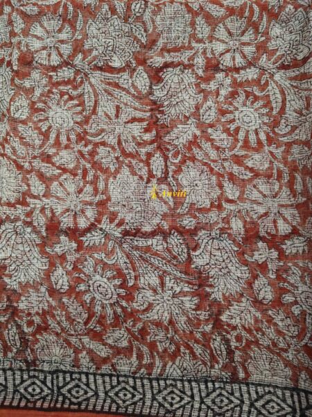 Maroon hand block printed Kota doria saree with cotton blouse piece.