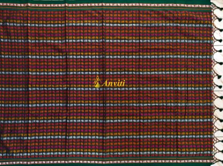 Black Khun cotton saree with maroon color peacock and elephant motifs woven with maroon border.